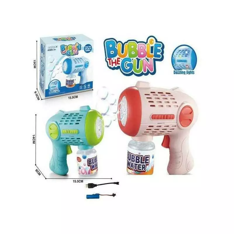 Пістолет з мильними бульбашками 9834 A (72) 2 кольори, акум. 3.7V, USB-кабель, мильний розчин, підсвічування, автоматичний принцип, в коробці