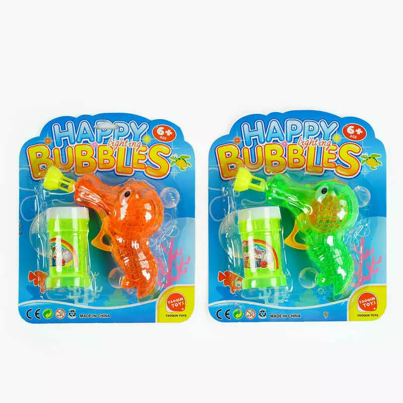 Пістолет з мильними бульбашками 9908 A (216/2) 2 кольори, механічний, прозорий корпус, пляшечка із мильною рідиною, на листі