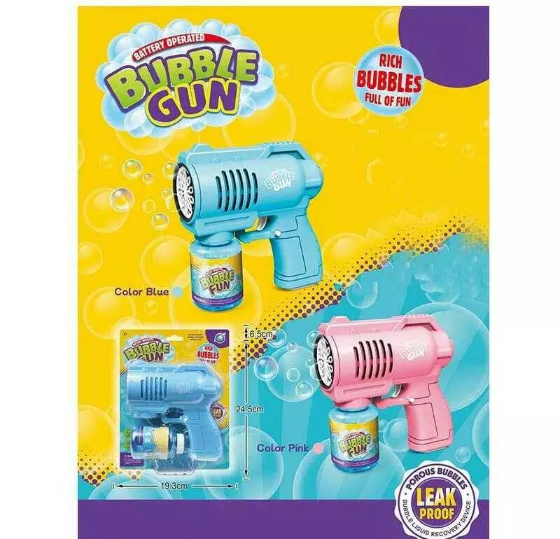 Пістолет з мильними бульбашками AL 2026-1 (72/2) 2 кольори, автоматичний принцип, пляшка мильного розчину, підсвічування, на батарейках, на листі