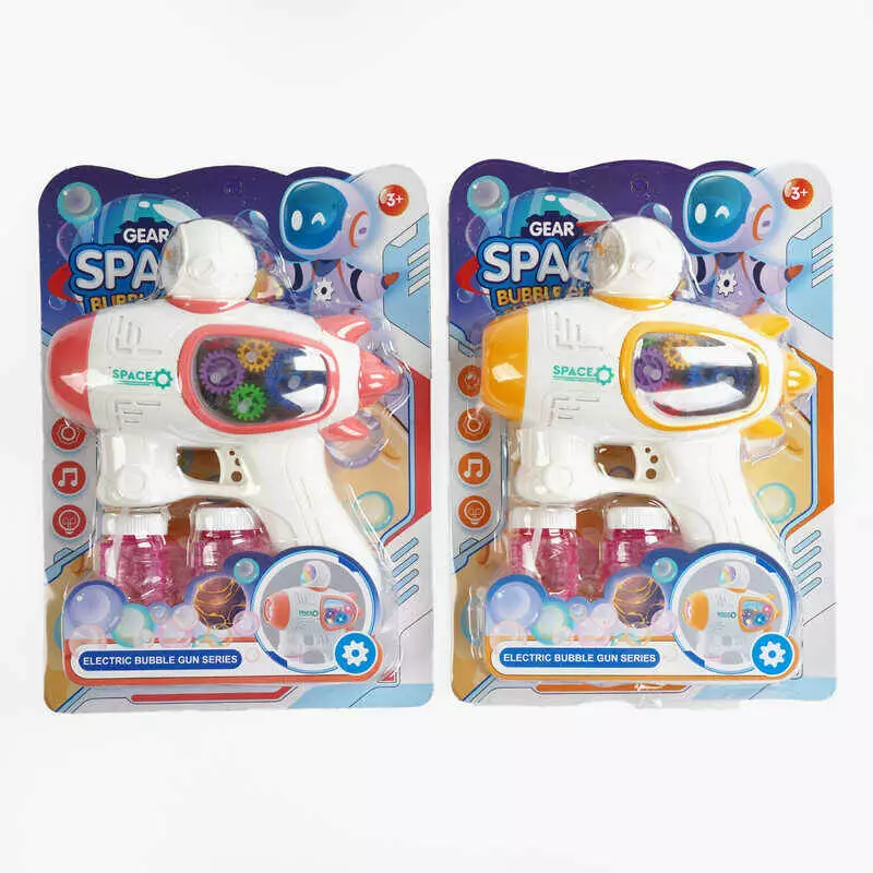 Пістолет з мильними бульбашками WX 533 (60) 2 кольори, світло, мелодія, автоматичний, 2 пляшечки з мильним розчином, на листі, ВИДАЄТЬСЯ МІКС