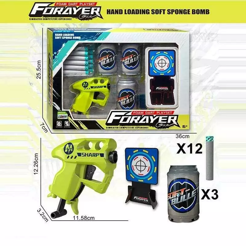 Головна > Каталог > Іграшки > Мильні бульбашки > Пістолет з мішенню JM 001 A (36) 12х3х12 см, механічний принцип роботи, 2 картонні мішені, 3 банки, 12 м’яких патронів, в коробці оптом