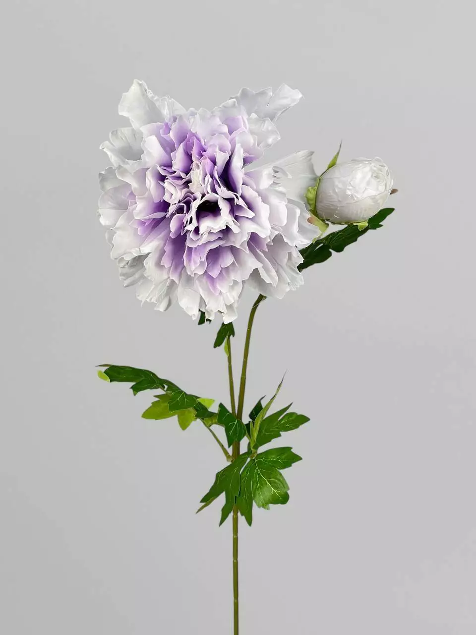 Півонія штучна на стеблі 1+1, сатин, ніжно-фіолетовий, 84 см