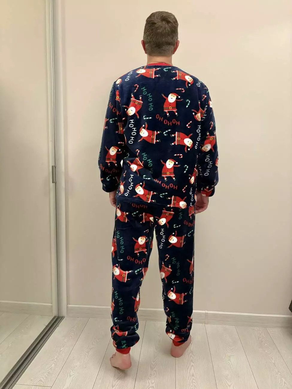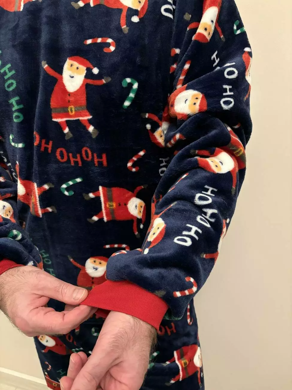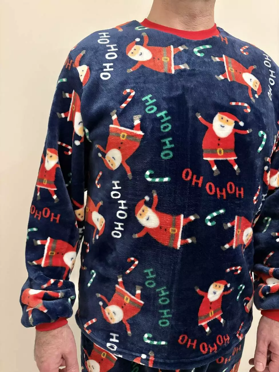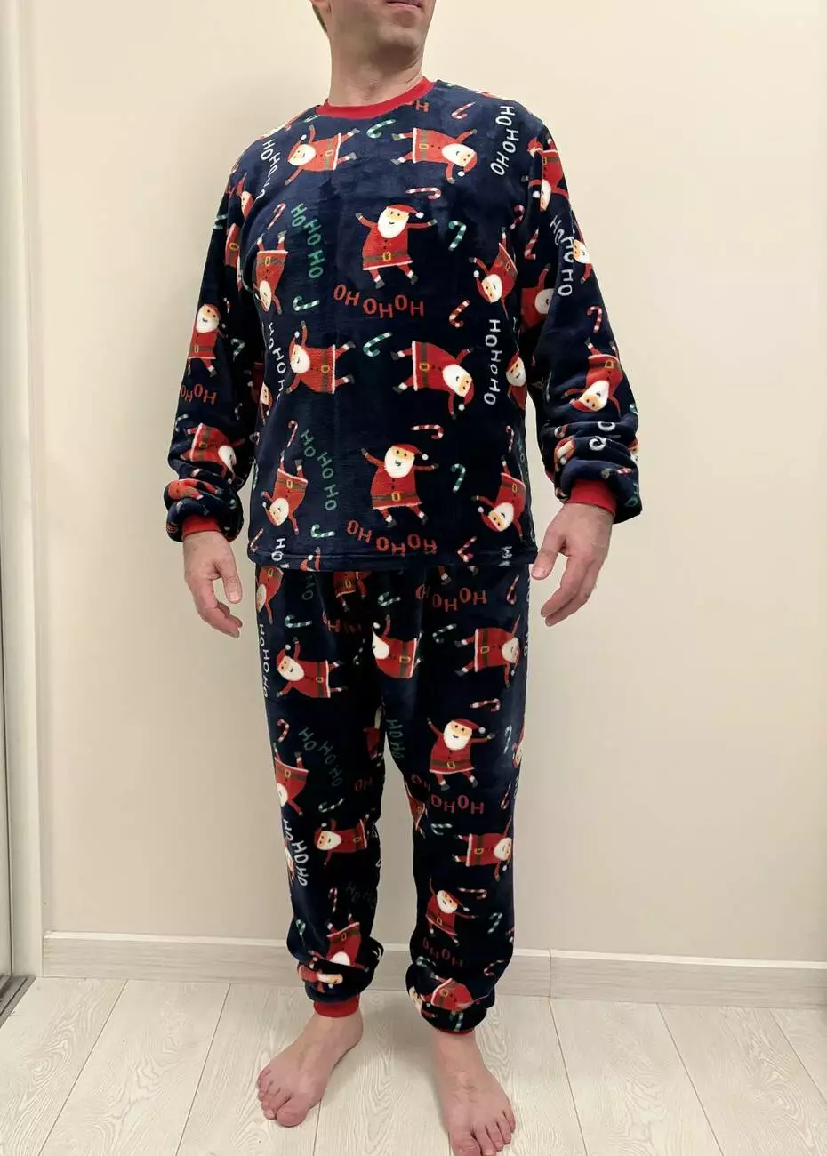Тепла чоловіча піжама з велсофту "Santa" — це максимум новорічного комфорту для морозних днів і святкових вечорів. М'яка, затишна й надзвичайно приємна на дотик, вона створює особливий, радісний настрій. Глибокий темно-синій фон — як нічне зимове небо — служить ідеальним полотном для нашого принта: веселі Санти, що скачуть і танцюють. Цей святковий дизайн виглядає стильно, не надто яскраво і миттєво викликає відчуття свята та безтурботності. Манжети на рукавах і штанах забезпечують зручну посадку, захищають від холоду та дозволяють активним Сантам не відволікатися від веселощів! Велсофт — пухнастий, легкий і теплий матеріал, який дарує відчуття затишку з перших секунд. У цій піжамі ви забудете про зимову холоднечу. Ця піжама ідеально підходить не лише для сну, а й для створення справжнього різдвяного настрою вдома: для перегляду святкових фільмів, розпаковування подарунків під ялинкою чи спокійного вечора з кухлем гарячого какао. Є також жіноча модель у такому ж святковому дизайні — можна створити парний новорічний образ у стилі cosy і зустріти свята разом!