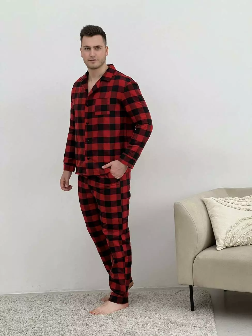 Піжама чоловіча COSY з фланелі (штани+сорочка) клітина червоно/чорна