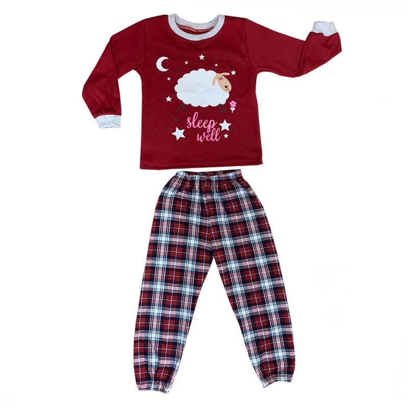 Детская пижама для девочки кофта с рисунком, штаны в клетку, низ штанов на резинке.