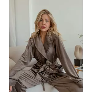 Жіноча піжама з велюрової тканини. Комплект складається з довгої сорочки з кишенею на грудях та штанів вільного крою на резинці. Жіночий костюм ідеально підходить для сну та домашніх справ. Тканина майже не мнеться, добре пропускає повітря і не втрачає колір при пранні. Увага, піжама розміру XL на замовлення: пошиття такої краси займе 2-3 дні