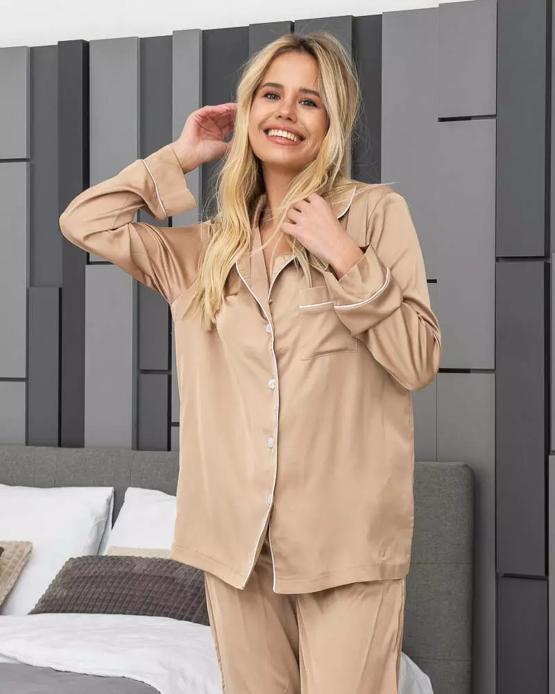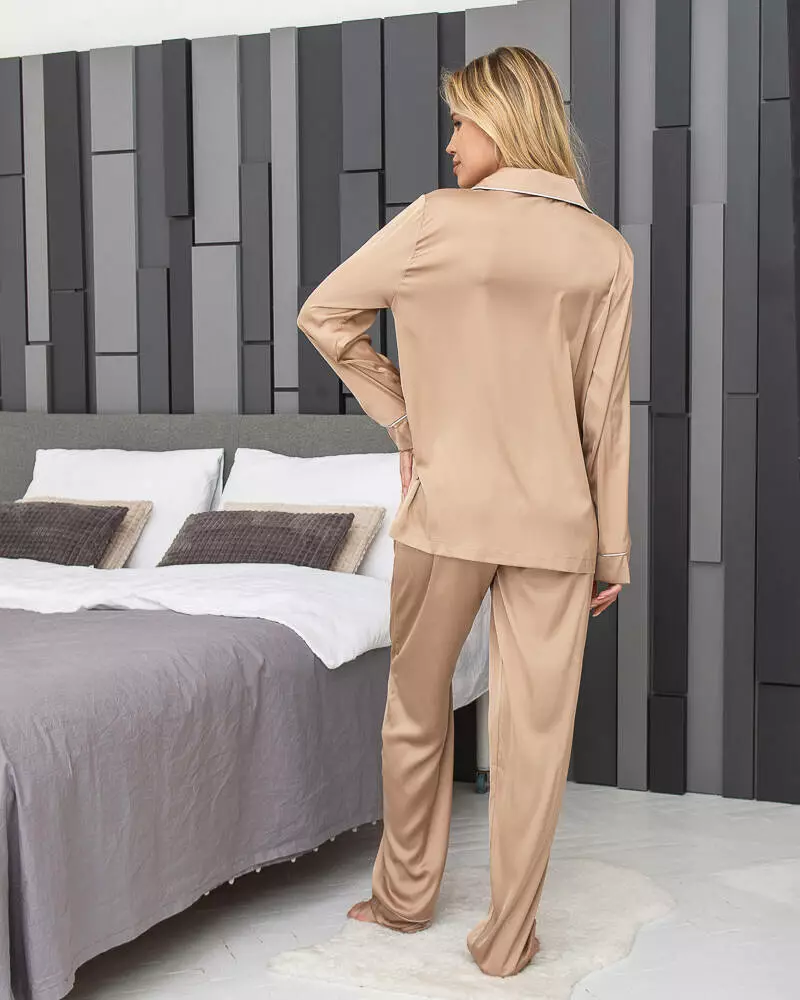 Жіноча піжама з шовкової тканини Armani. Комплект складається з довгої сорочки з кишенею на грудях та штанів вільного крою на резинці. Жіночий костюм ідеально підходить для сну та домашніх справ. Тканина майже не мнеться, добре пропускає повітря і не втрачає колір при пранні. Увага, піжама розміру XL на замовлення: пошиття такої краси займе 2-3 дні