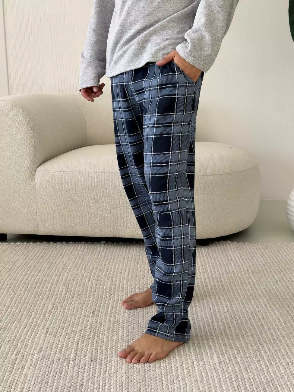 Штани: синьо-синя клітинка додає стилю та затишку.