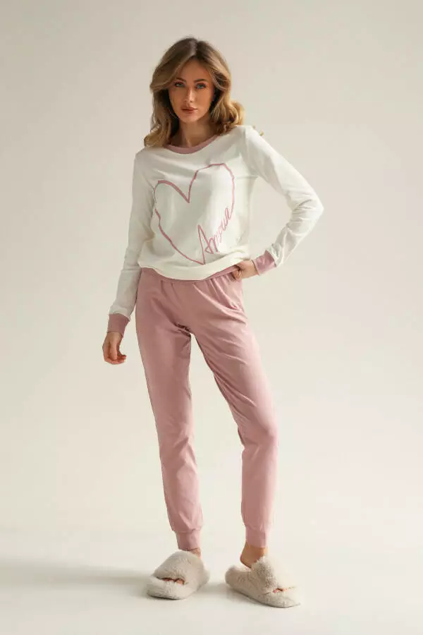 Рожевий колір піжами додає їй особливої ніжності й романтичності, створюючи теплу і спокійну атмосферу. Цей відтінок ідеально підходить для тих, хто любить жіночний і витончений стиль, навіть у домашньому гардеробі. Завдяки універсальному кольору, піжама легко поєднується з різноманітними домашніми аксесуарами, такими як теплі шкарпетки або затишні капці, створюючи завершений образ для вашого домашнього релаксу.