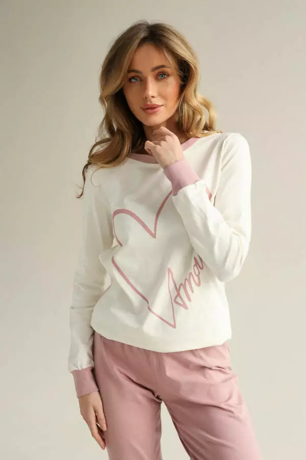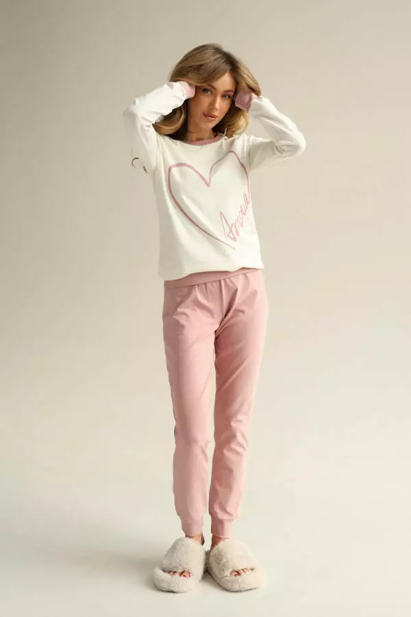 Жіноча піжама "Amour" у ніжному рожевому кольорі від German Volf, що складається з лонгсліву та штанів, – це поєднання комфорту, м'якості та елегантності для домашнього відпочинку. Виконана з високоякісного матеріалу, ця піжама забезпечує затишок та дарує приємне відчуття легкості, ідеально підходячи для вечірнього релаксу або спокійного сну. Ніжний рожевий колір додає образу жіночності та створює атмосферу затишку і спокою, дозволяючи вам відчути себе комфортно та стильно навіть удома.