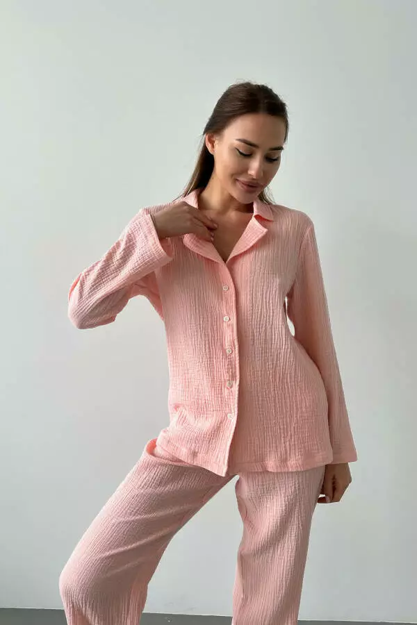 Піжама жіноча з муслінової тканини складається з штанів і кофти з