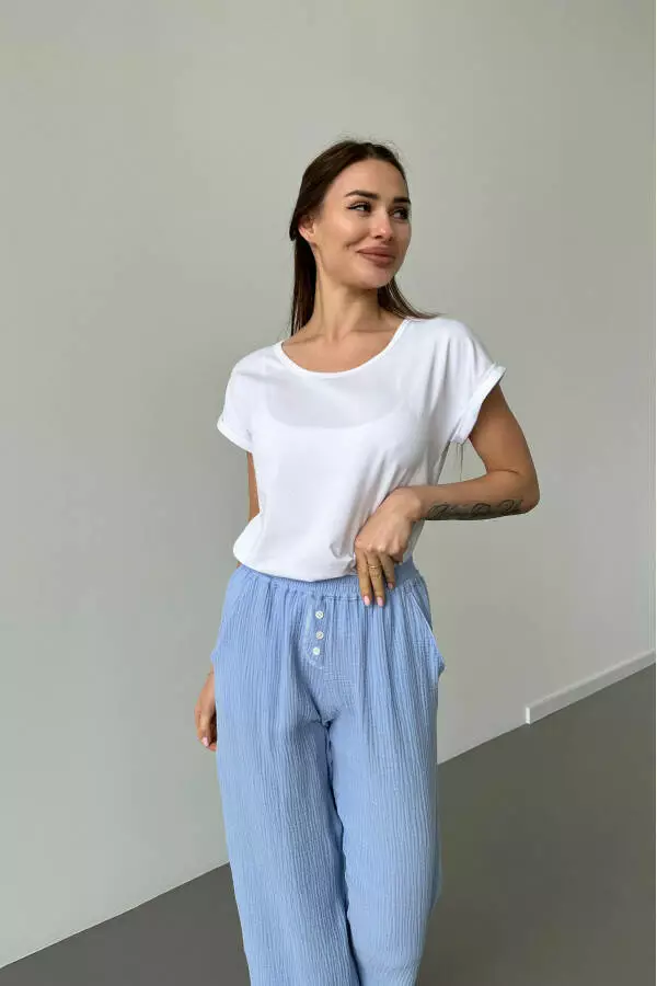 Піжамний комплект футболка біла та штани муслінові