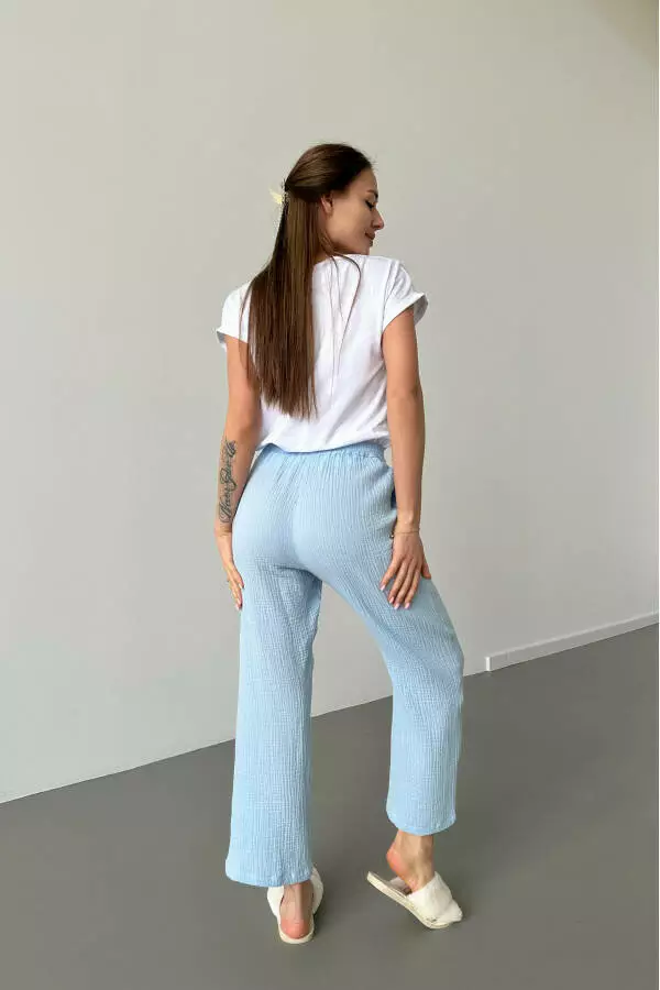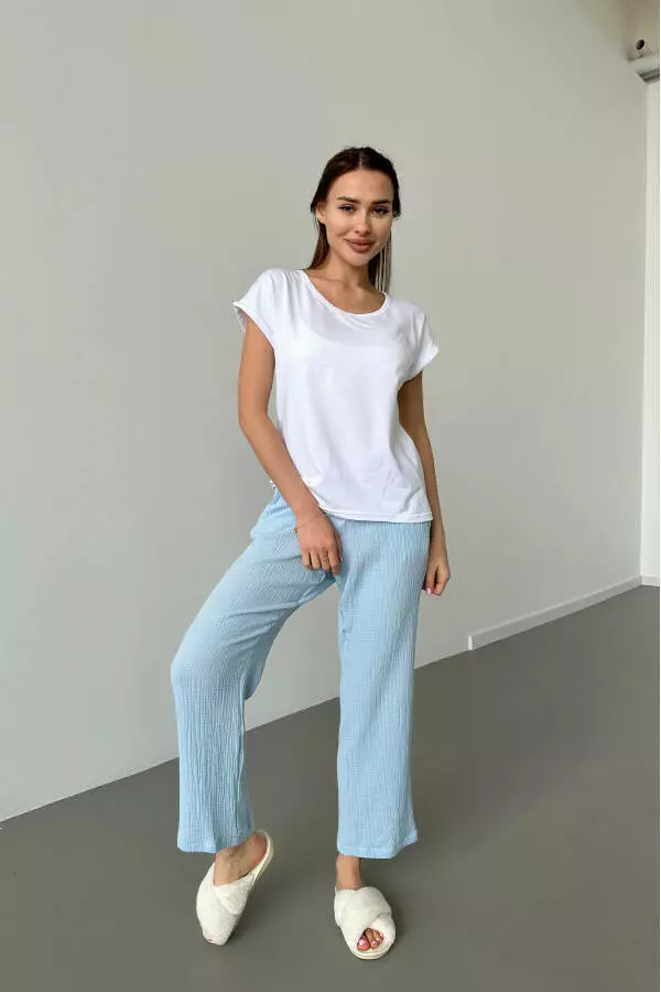 Піжамний комплект від брендового виробника German Volf включає білу футболку і муслінові штани. Футболка виконана з м'якого та приємного до тіла матеріалу, забезпечуючи комфорт та свободу рухів. Футболка базова може бути носима як удома, так і на прогулянці. Штани з мусліну мають легкість і добре дихають, що робить їх відмінним варіантом для сну або відпочинку. Цей піжамний комплект поєднує стиль, зручність і якість, які подарують вам приємні моменти відпочинку і комфорту.