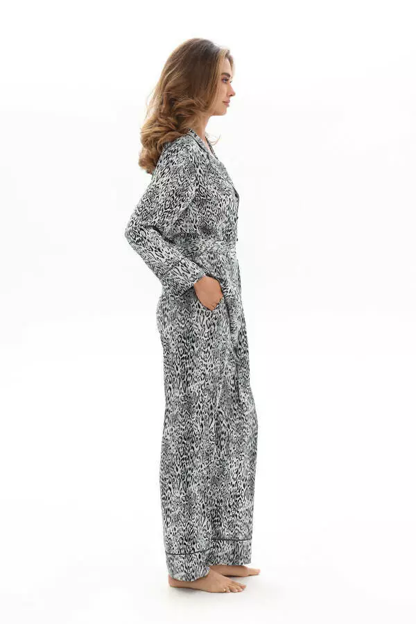 Піжамний комплект: сорочка з довгим рукавом та штани German Volf Леопард сірий М (44) 25036