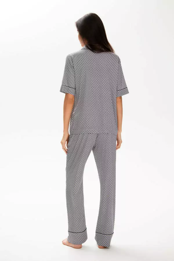 Цей піжамний костюм представлений у витонченому принті в сірому кольорі який підкреслює його елегантність та додає нотку розкоші. Вишуканий дизайн та висока якість виконання роблять його не просто домашнім одягом, а справжнім втіленням стилю та смаку. Бренд German Volf славиться своєю увагою до деталей та використанням тільки найкращих матеріалів. Піжами жіночі цього бренду – це символ якості та стилю. Купити піжаму жіночу від German Volf – це зробити вибір на користь розкішного комфорту та бездоганного стилю.
