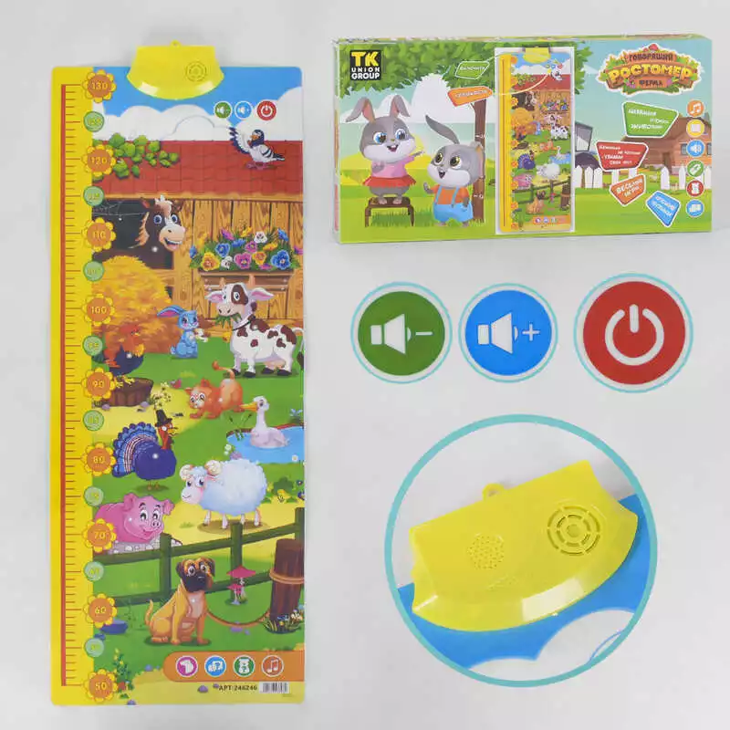 Головна > Каталог > Плакат "Говорящий ростомер" 246246 (12) "TK Group", 4 песенки, 11 озвученых животных, игры, русское озвучивание, на батарейках, в коробке оптом