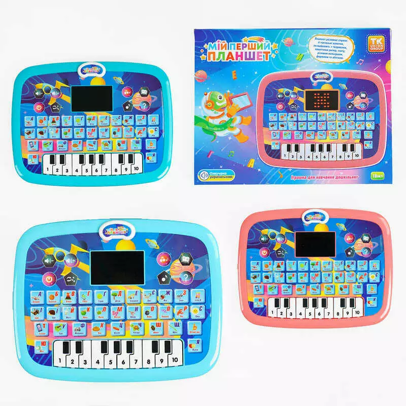 Планшет інтерактивний 11289 (60/2) "TK Group", ОЗВУЧ. УКР. МОВОЮ, 2 кольори, LED екран, казка, пісні, мелодії, абетка, екзамен, піаніно, у коробці