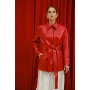 Плащ з екошкіри з поясом RED OBSESSION 2в1
