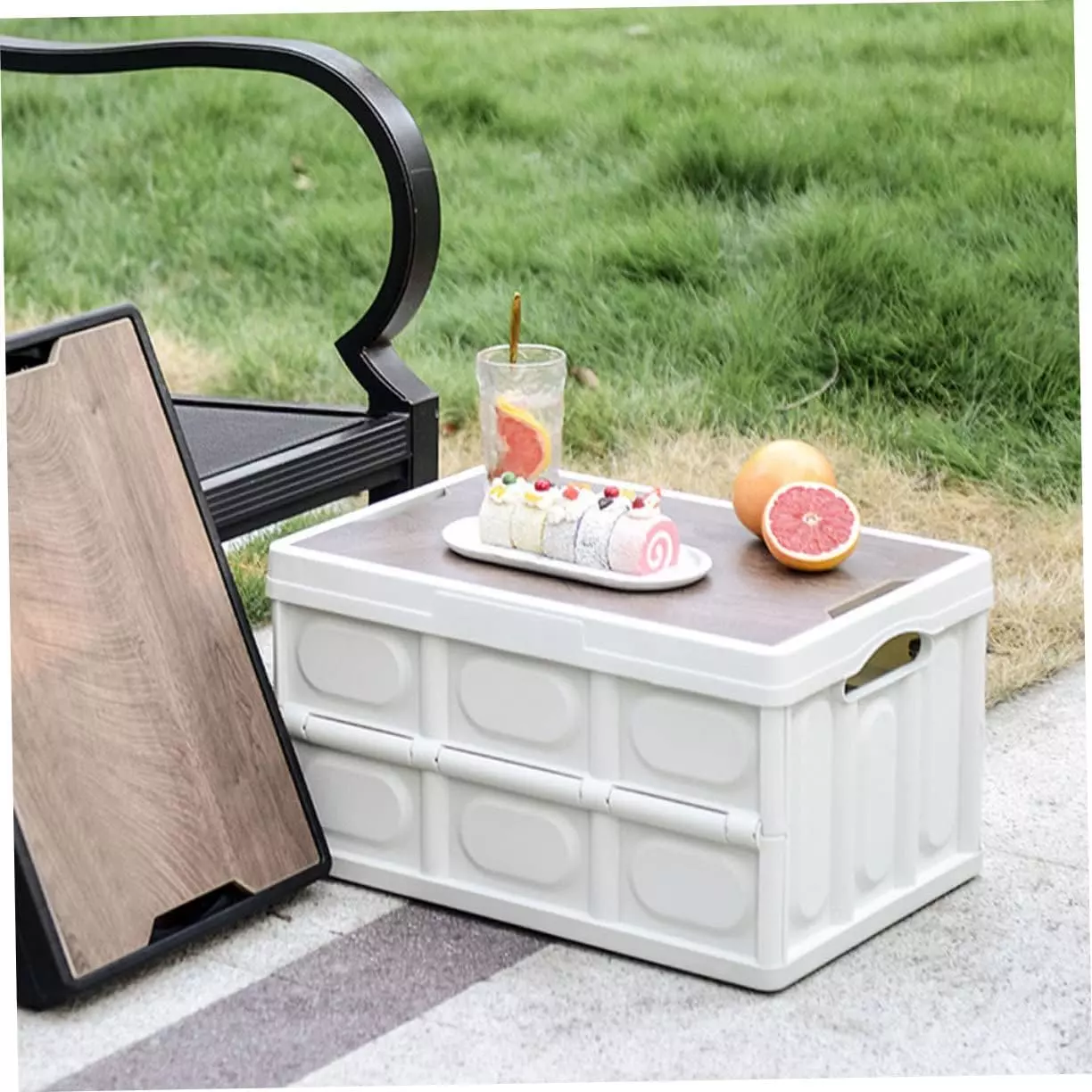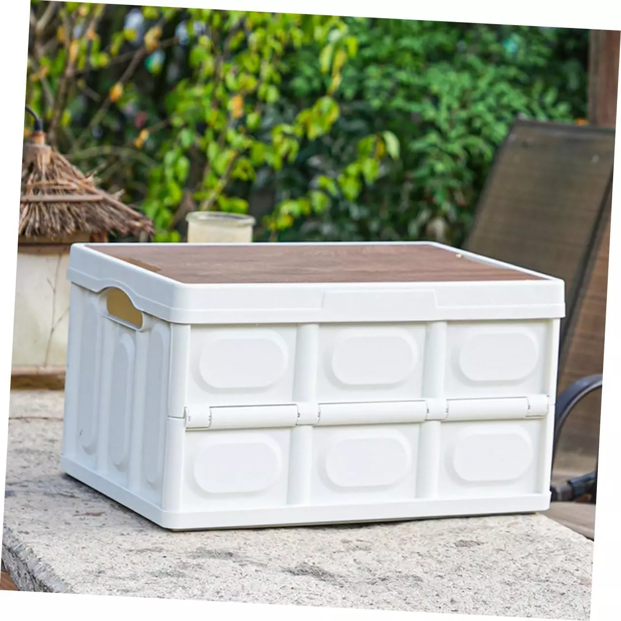 Пластиковый контейнер для хранения с деревянной крышкой - это