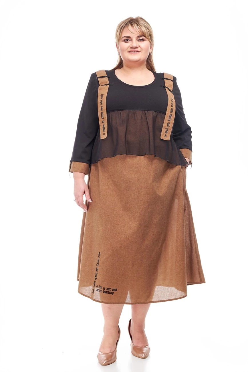 Тканина: льон-100% льон; двонитка -95% бавовна; 5% еластан. Модна, красива сукня з натуральної тканини парашут і двонитка. Рукав 3/4, горловина кругла, на плечах лямки, на грудях баска з шифону. Тканина легка, дихаюча, гарної якості.