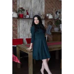 Платье Джоана выполнено из ткани трикотаж Lacosta высокого качества. Платье с длинным рукавом, длиной до колена, воротник стойка. Украшением служат золотистые пуговички, платье отрезное по линии талии. Лиф платья плотно облегает фигуру благодаря рельефам, которые также подчеркивают талию. Юбка клеш. Модель отлично тянется, что обеспечивает идеальную посадку на любую фигуру. Такое платье - беспроигрышный вариант для вечернего выхода.