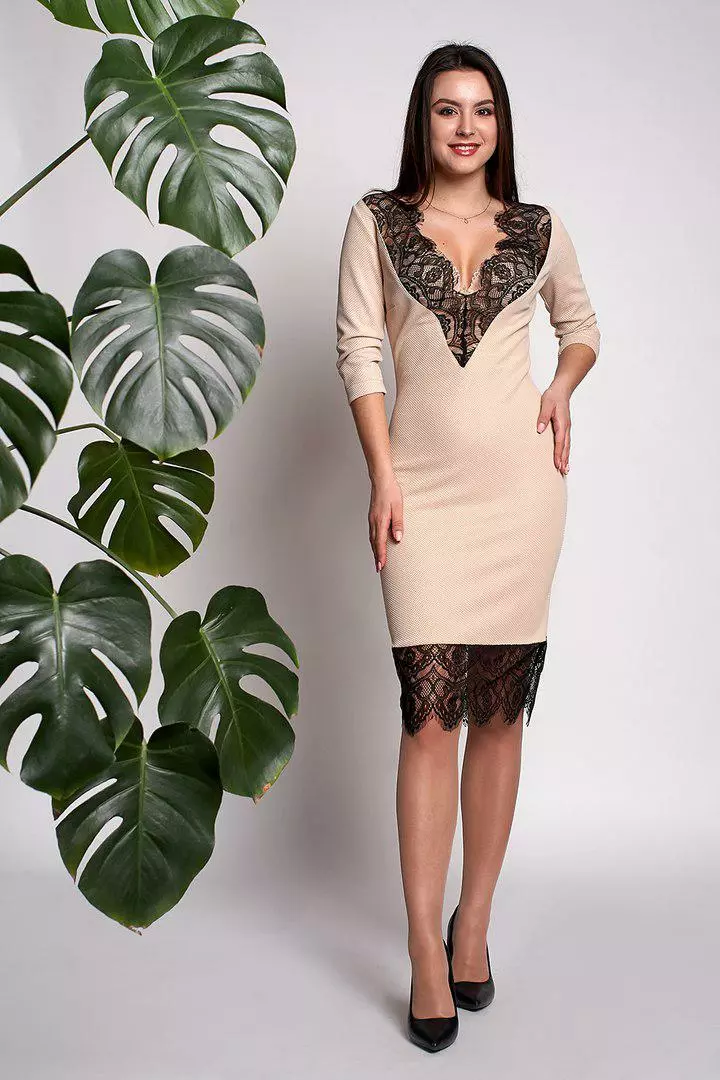 Женственное платье Флорет выполнено из ткани кукуруза высокого качества. Платье длинной чуть ниже колена, рукав ¾, V-вырез украшениям которого служат гипюровые красивые вставки. Платье очень женственное, идеально садится по фигуре. Такое платье не оставит Вас без мужского внимание, в нем Вы будите выглядеть потрясающе.