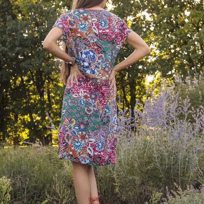 Сукня-футболка прямого крою, виконана з бавовняного штапеля. При