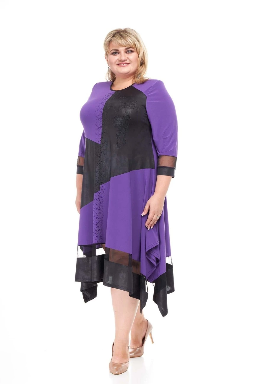 напил.на олію - 100% поліестер, сітка -100% поліестер. Крій асиметрія по центру горловини прикраса з каменів. Поєднання тканини робить сукню елегантною. Рукави та низ вироби виконані з трикотажу та сітки. Рукав 3/4.