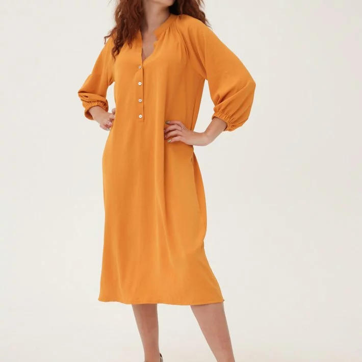 Сукня вільного крою, з об'ємним рукавом 3/4, горловина оброблена