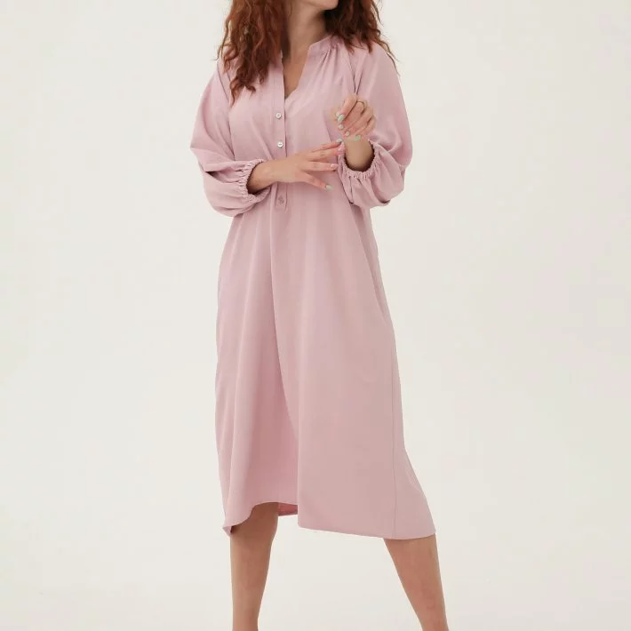 Сукня вільного крою, з об'ємним рукавом 3/4, горловина оброблена