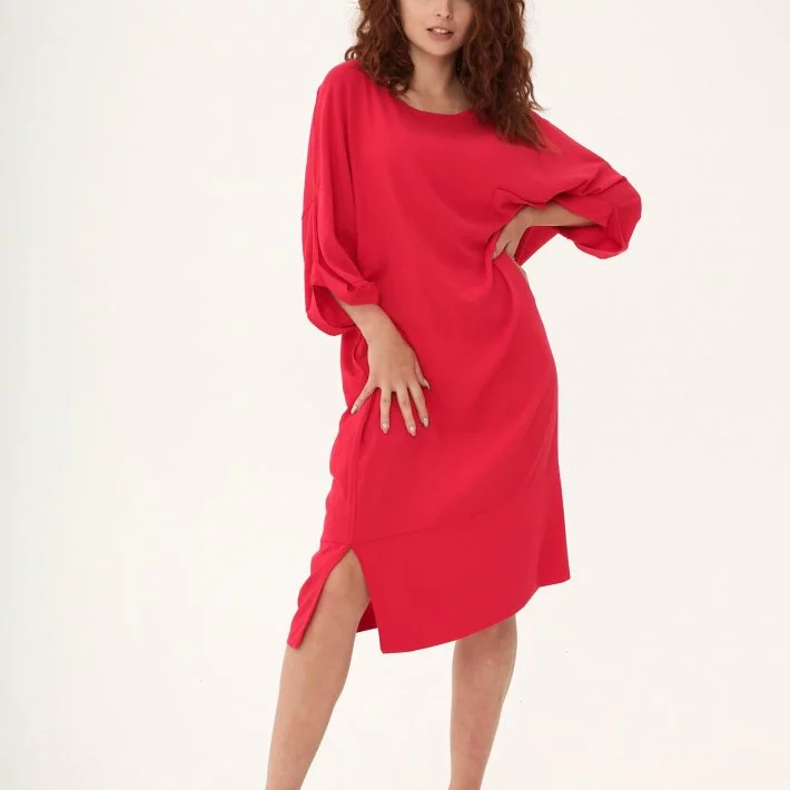 і декоративну кишеньку на рівні грудей. Сукня зі спущенов лінією