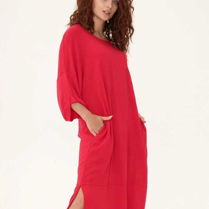 Яскрава стильна сукня з подвійним низом, має кишені в бокових швах