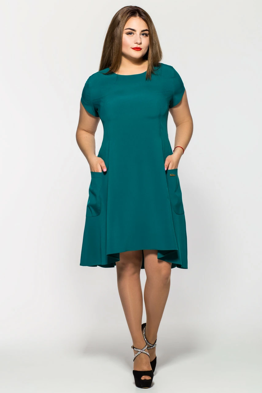 Платье Милана короткий рукав бутылочного цвета 52