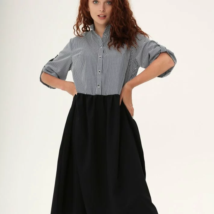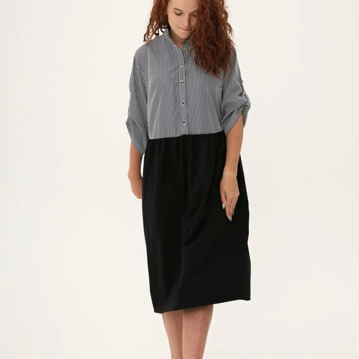 Сукня-сорочка з трохи завищеною лінією талії з комбінованої