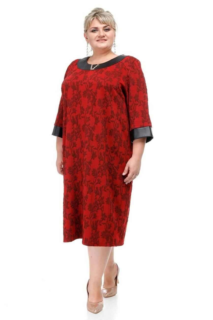 Тканина: жакард -100% поліестер, олія -70% поліестер; 20% віскоза; 5% еластан. Красива сукня прямого силуету з тканини жоккард. Рукав 3/4 прикрашений екошкірою. Горловина кругла з еко-шкіри з V-образною прикрасою. Тканина тепла, добре тримає форму.