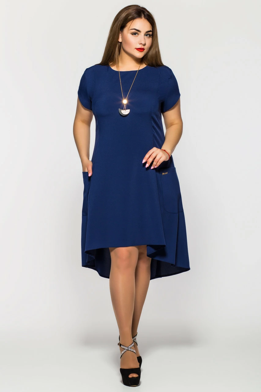 Платье летнее Милана короткий рукав синее 48