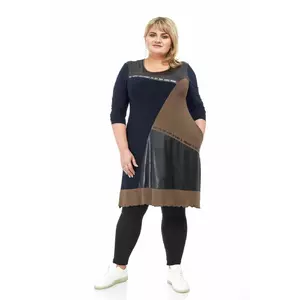 Тканина: віскоза-95% віскоза; 5% еластан. Плаття - основна тканина-віскоза, вставки-масло та диско. Модель має силует трапеція лінії якого розходяться до низу. Асиметричний малюнок успішно підкреслює стегна та груди. Рукав 3/4 з манжетою. Горловина кругла. Функціональні кишені у бокових швах. Має гарну розтяжність, добре сідає на фігуру, не вигоряє, не меніться на довго зберігає свої якості. Догляд: делікатне прання, при прасуванні праску нагрівати не вище 110 градусів.
