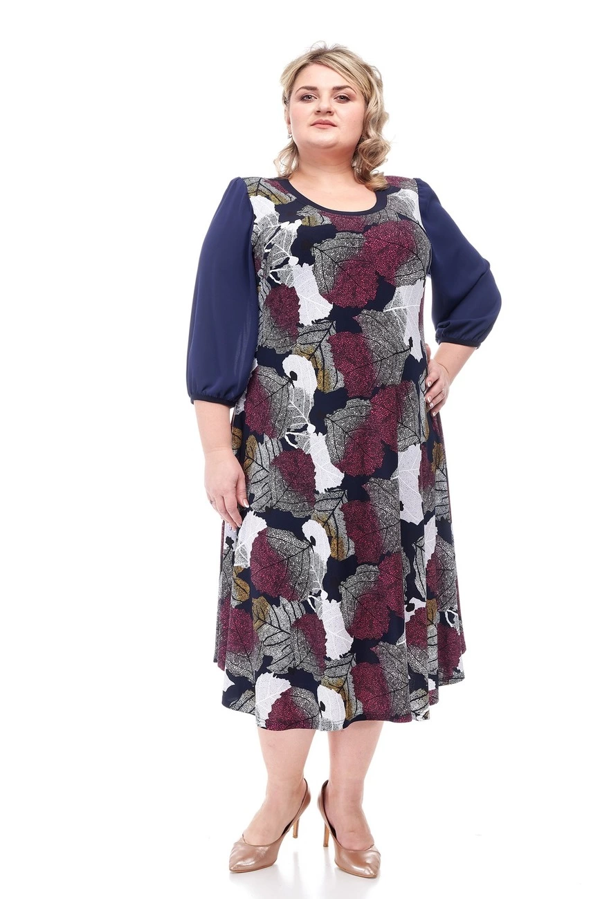 Тканина: олія - 70% поліестер; 20% віскоза; 10% еластан. Красива, модна сукня напівприлеглого силуету, виконана з тканини олія. Рукав до ліктя, горловина кругла. На спинці горловина з V-подібним вирізом. Тканина гарної якості, не потребує особливого догляду.