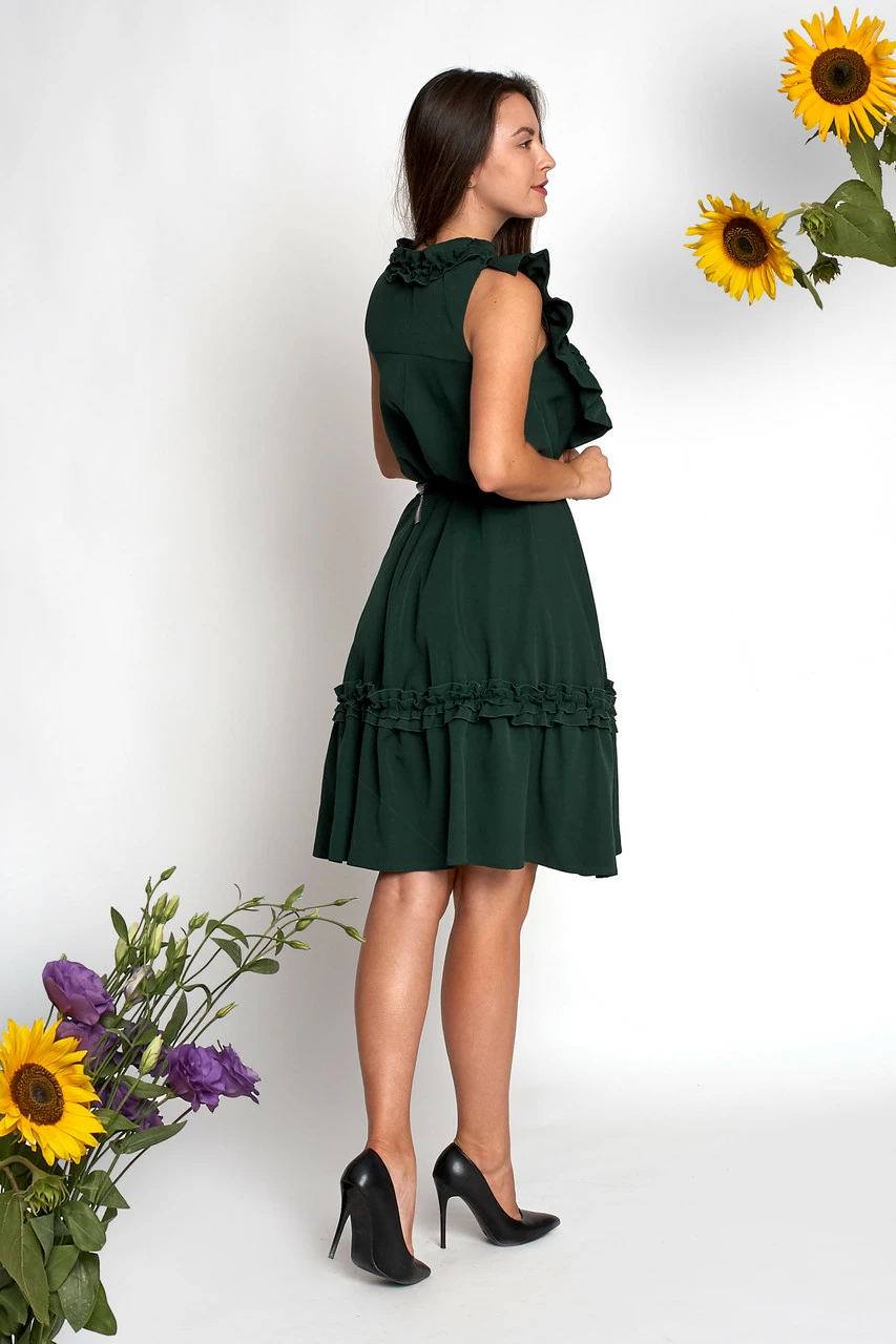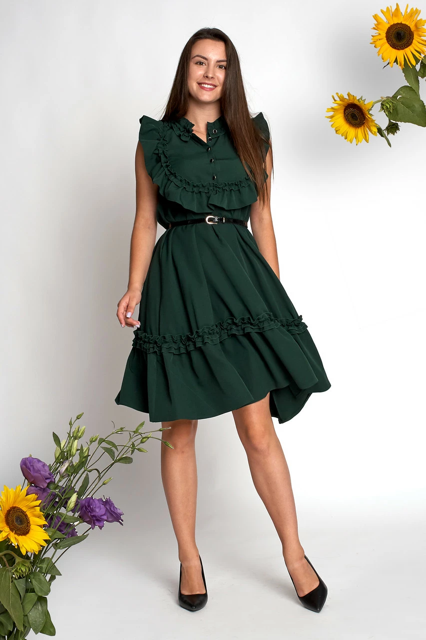 Платье Влада пошито из ткани костюмка высокого качества. Платье длиной миди, свободного покроя, украшением служат красивые рюши и пуговички на груди. Платье Влада идет в комплекте с черным пояском с золотистой пряжкой. Такое платье отлично подойдет для любого типа фигуры, в нем Вы будете выглядеть потрясающе. Красиво смотрится с туфлями – лодочками.