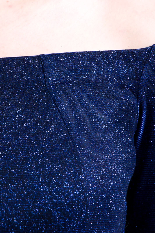 Святкова сукня з м'якого трикотажу з люрексом - ідеальний варіант для вечора. Модель має оригінальний дизайн, за допомогою якого можна підкреслити жіночність фігури: