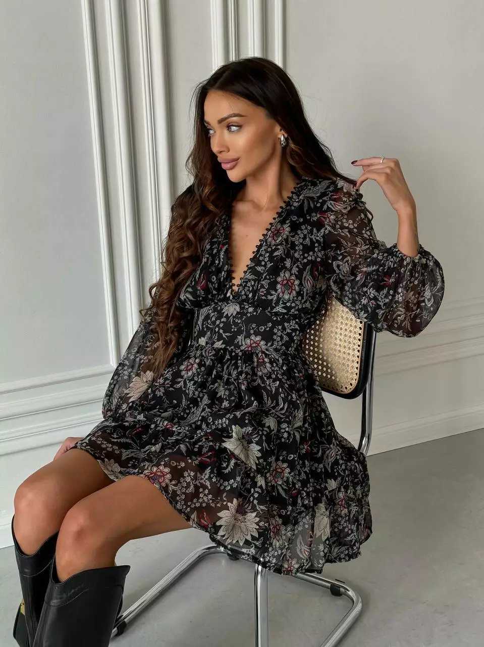 • Довжина по спинці: 85 см • Застібається потайною змійкою збоку • Розмір: one size (42-46) • Тканина: шифон принт LUX • Підкладка: хб (батист)