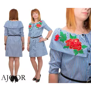 Изготовлено из хлопка турецкого производства,платье по воротнику украшено апликацией 3-D формате дополнение ремешок в комплекте.