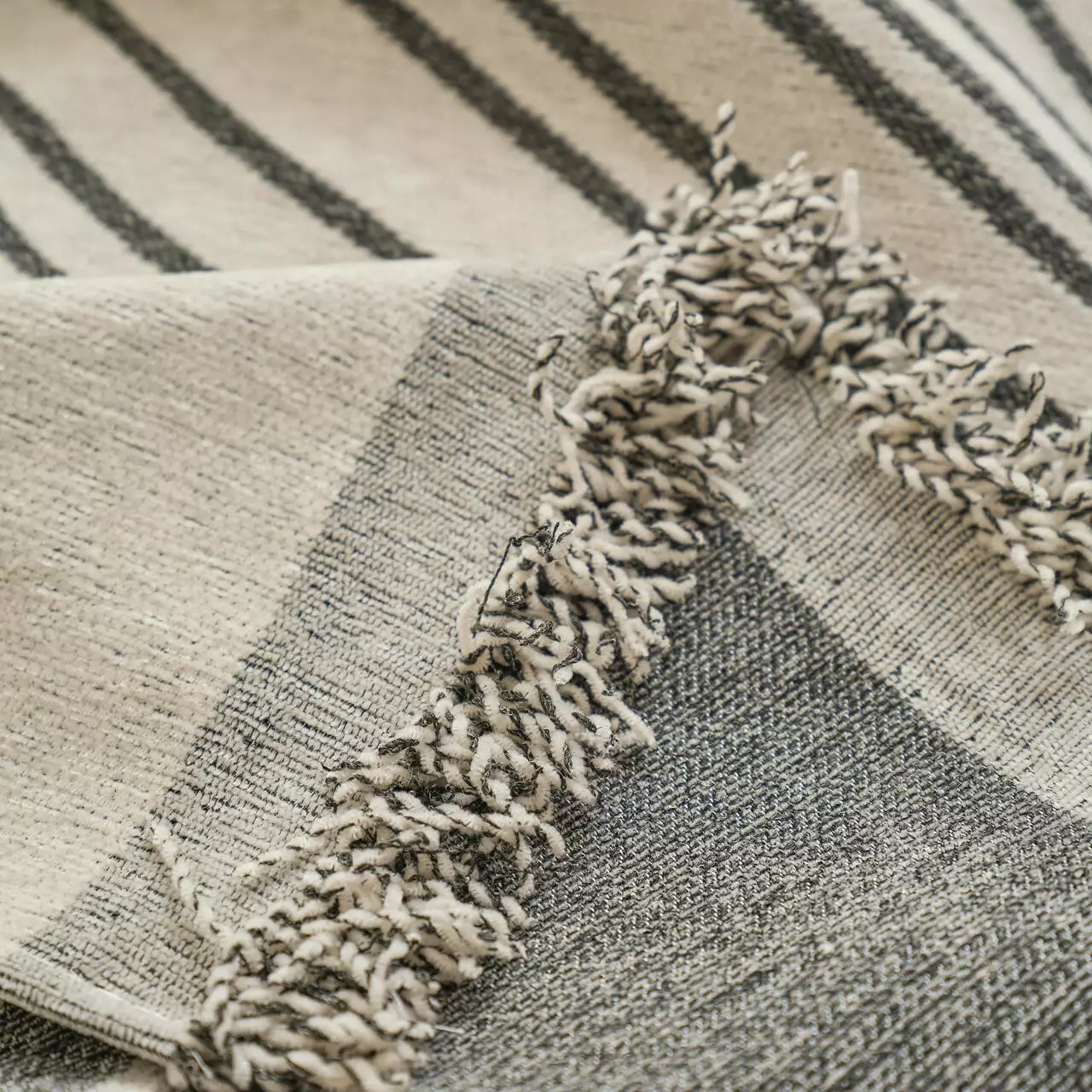 Основний колір-бежевий, прикрашений стильним сірим смугастим