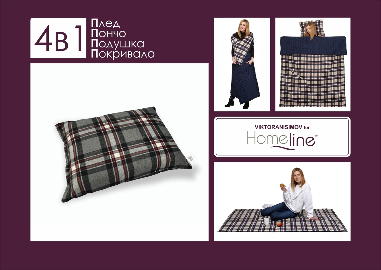 Плед-транформер 4 в 1 поєднує в собі: Подушку, Пончо, Плед,