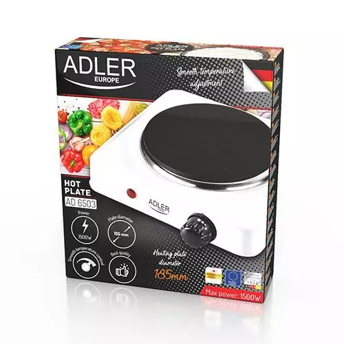 Одноконфорочна електроплита - міні-версія кухонного обладнання. Його можна використовувати для розігрівання або приготування страв, які не вимагають одночасного використання двох каструль або сковорідок. Плита AD 6503 може використовуватися як аварійний варіант при відсутності основної плити, так і стати постійним пристосуванням на дачі, маленькій кухні, в орендованій кімнаті або іншому приміщенні. Духовка дозволяє плавно регулювати температуру.