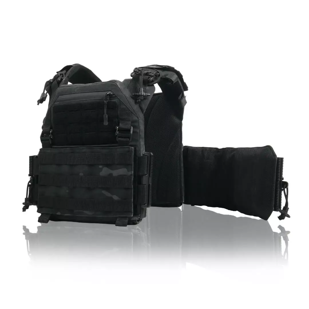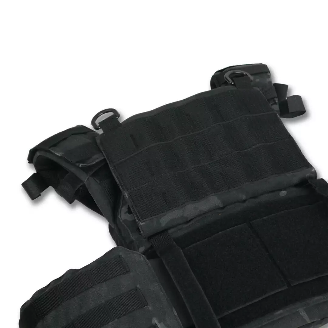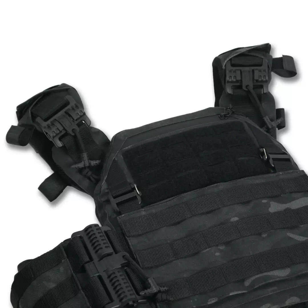Плитоноска оснащена съемной передней Molle панелью, которая крепится к основанию на Velcro и дополнительно двумя карабинами Woojin. На ней удобно размещаются 3 подсумка под один или два магазина, или другое Molle-совместимое снаряжение. Эту панель можно быстро заменить другой с закрепленным на нее заранее набором нужных подсумков.