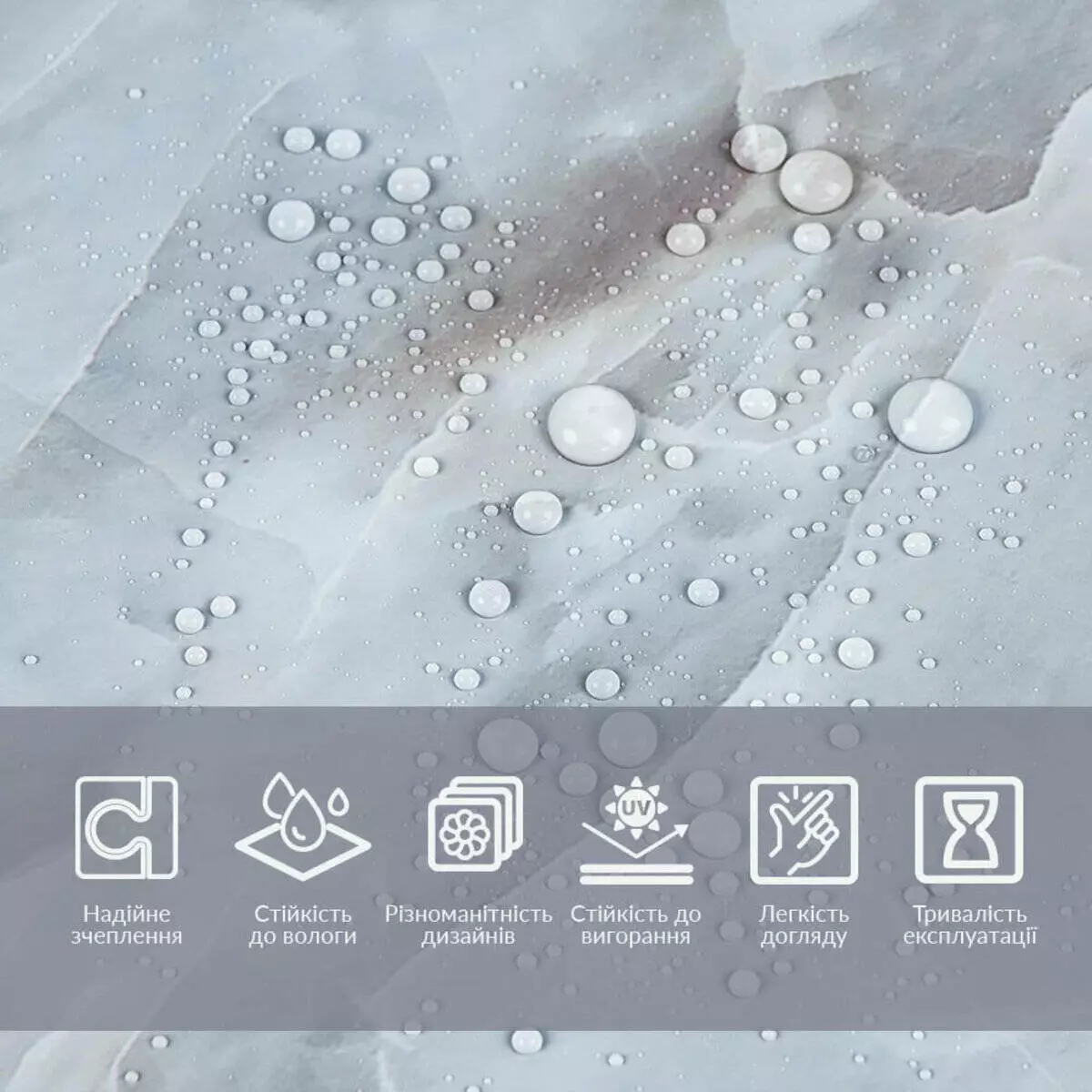 • Вологостійкість: завдяки ламінації, плівка має підвищену стійкість до вологи, що робить її ідеальною для використання у приміщеннях з підвищеною вологістю, таких як кухня чи ванна кімната.