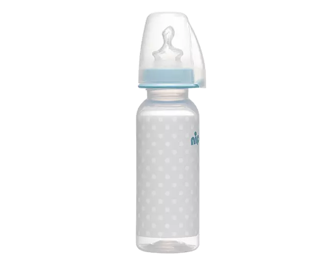 <p><em></em><em>Пляшка для годування Nip PP забезпечує легке і комфортне годування малюка.</em></p><p><br><strong>Основні переваги:</strong></p><p><br></p><ul><li><em>зроблена з щільного, високоякісного і нетоксичного поліпропілену</em></li><li><em>оснащена м'якою силіконовою соскою ортодонтичної форми з антіколіковим отвором і середнім потоком</em></li><li><em>захищає від заковтування повітря під час годування, чим запобігає виникненню колік</em></li><li><em>має широку горловину для зручного наповнення та очищення</em></li><li><em>не містить Бісфенол-А і фталати</em></li><li><em>є ковпачок, який забезпечує гігієнічність соски</em></li></ul><p><br><strong>Характеристики:</strong></p><p><br></p><ul><li><em>матеріал пляшечки: пластик</em></li><li><em>матеріал соски: силікон</em></li><li><em>колір синій</em></li><li><em>обсяг: 250 мл</em></li><li><em>рекомендовано для дітей від 6 місяців.</em></li></ul>