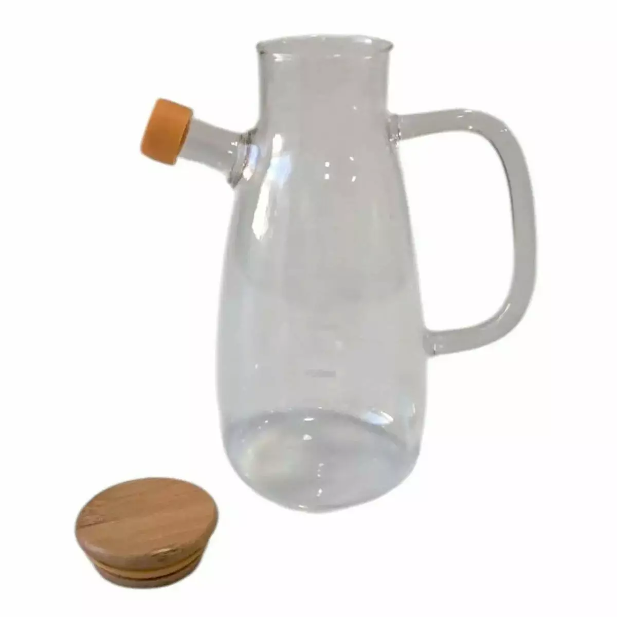 • Матеріал: міцне скло, бамбук (кришка), пластик (пробка)