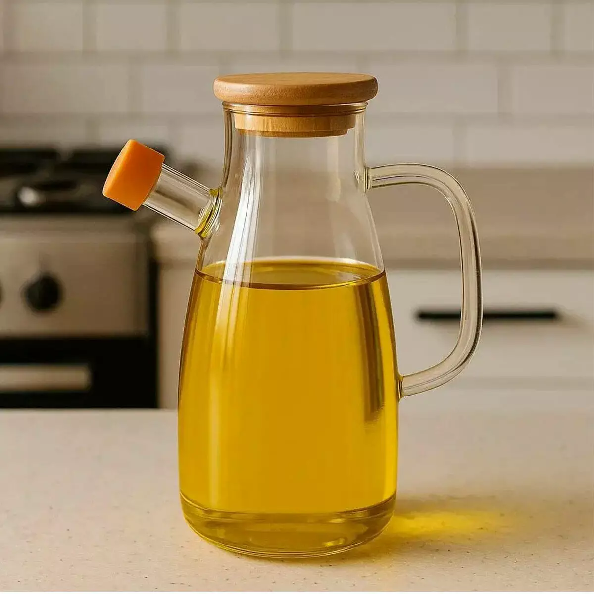 Скляна пляшка для олії та оцту з бамбуковою кришкою — це зручний та стильний аксесуар для кухні, який поєднує функціональність і мінімалістичний дизайн. Ємність об’ємом 650 мл підходить для зберігання оливкової, соняшникової олії, оцту чи соусів, допомагаючи підтримувати порядок і естетику на робочій поверхні. Завдяки прозорому корпусу легко контролювати рівень рідини всередині.
